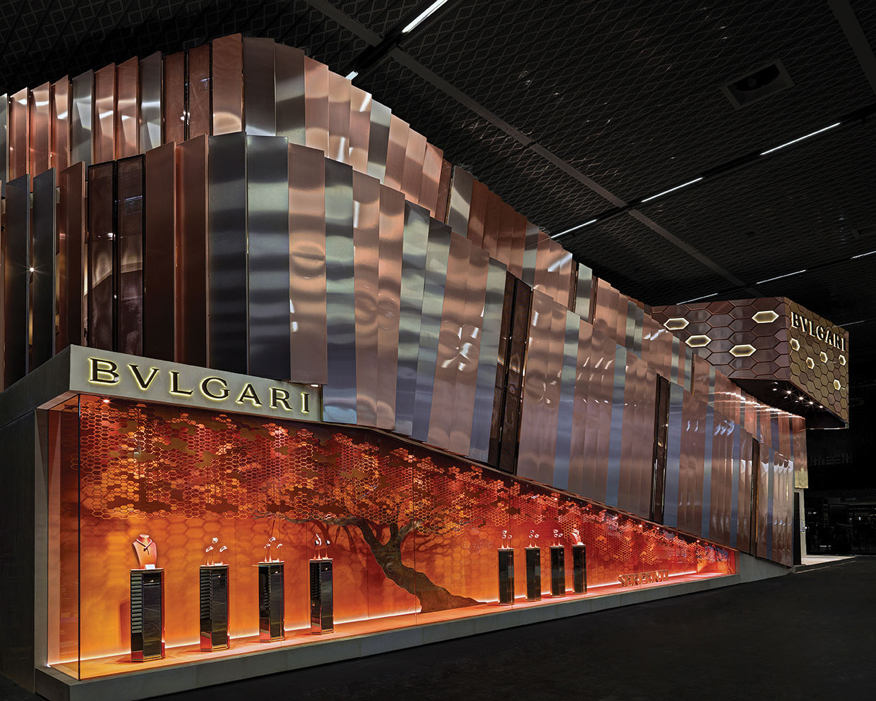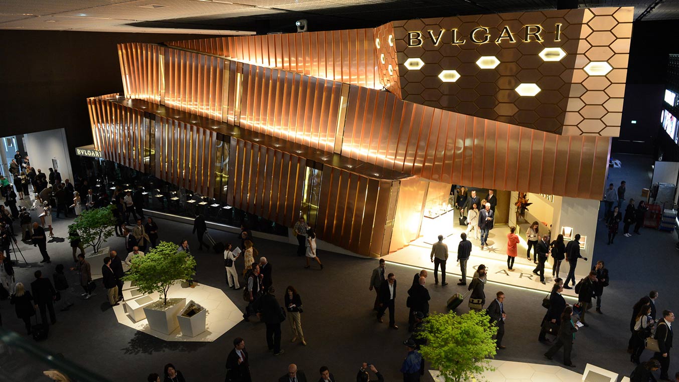 Un’opera architettonica che si stende su un’area dedicata di 6000 metri quadrati su due livelli, progettata e realizzata per svelare le ultime creazioni dei gioielli d’orologeria Bulgari al Baselworld di Basilea.