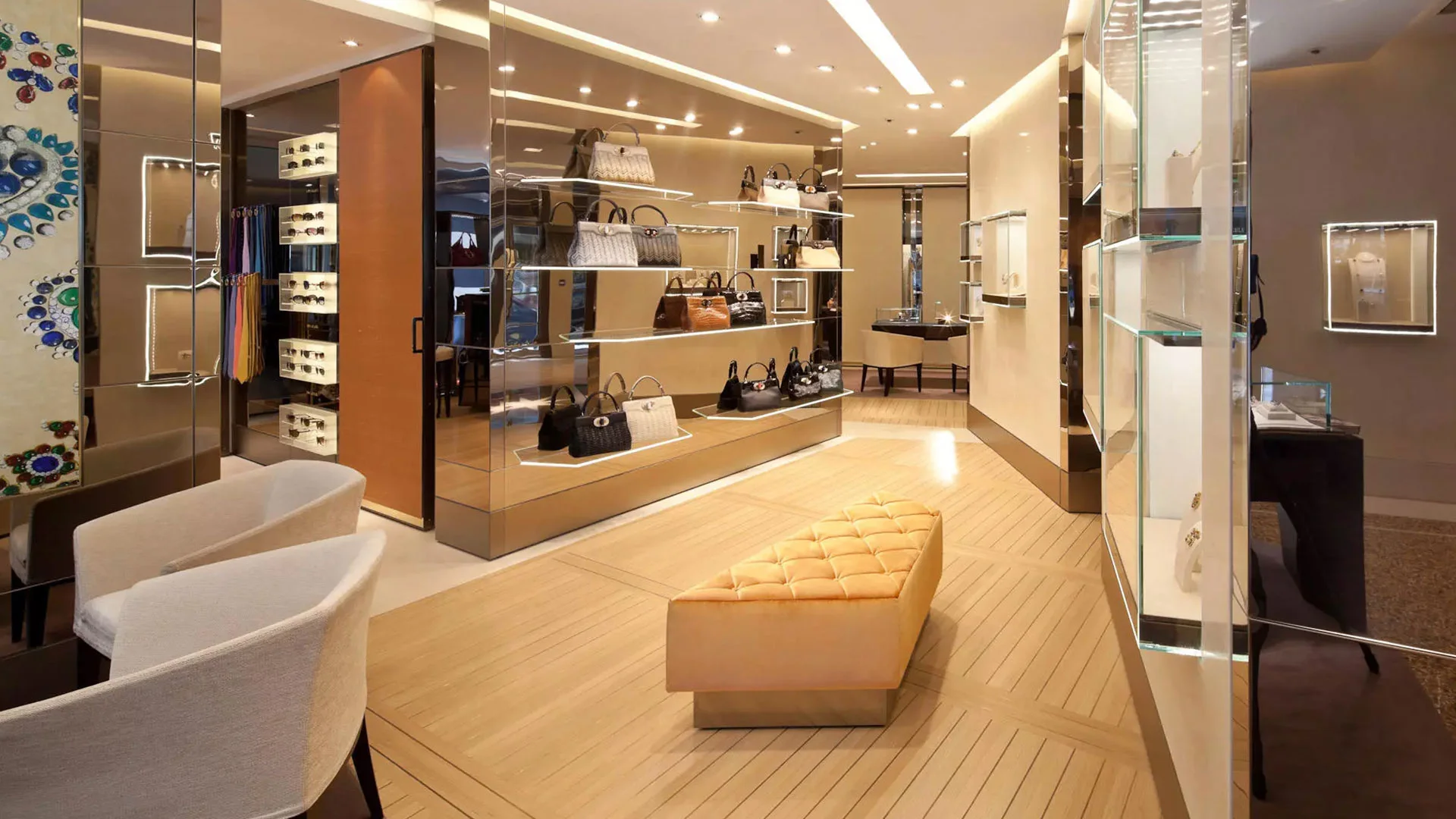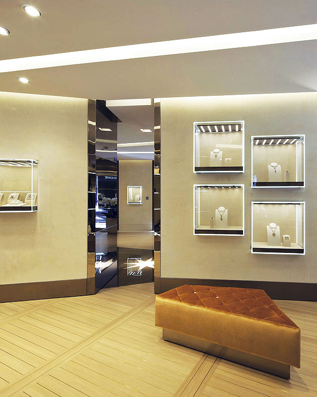 L’allestimento del negozio Bulgari a Ginevra si distingue per il suo straordinario stile e raffinatezza. Materiali pregiati e lavorazioni artigianali si combinano per creare un ambiente di lusso, offrendo un’esperienza indimenticabile che incarna l’eccellenza italiana nel cuore di Ginevra.